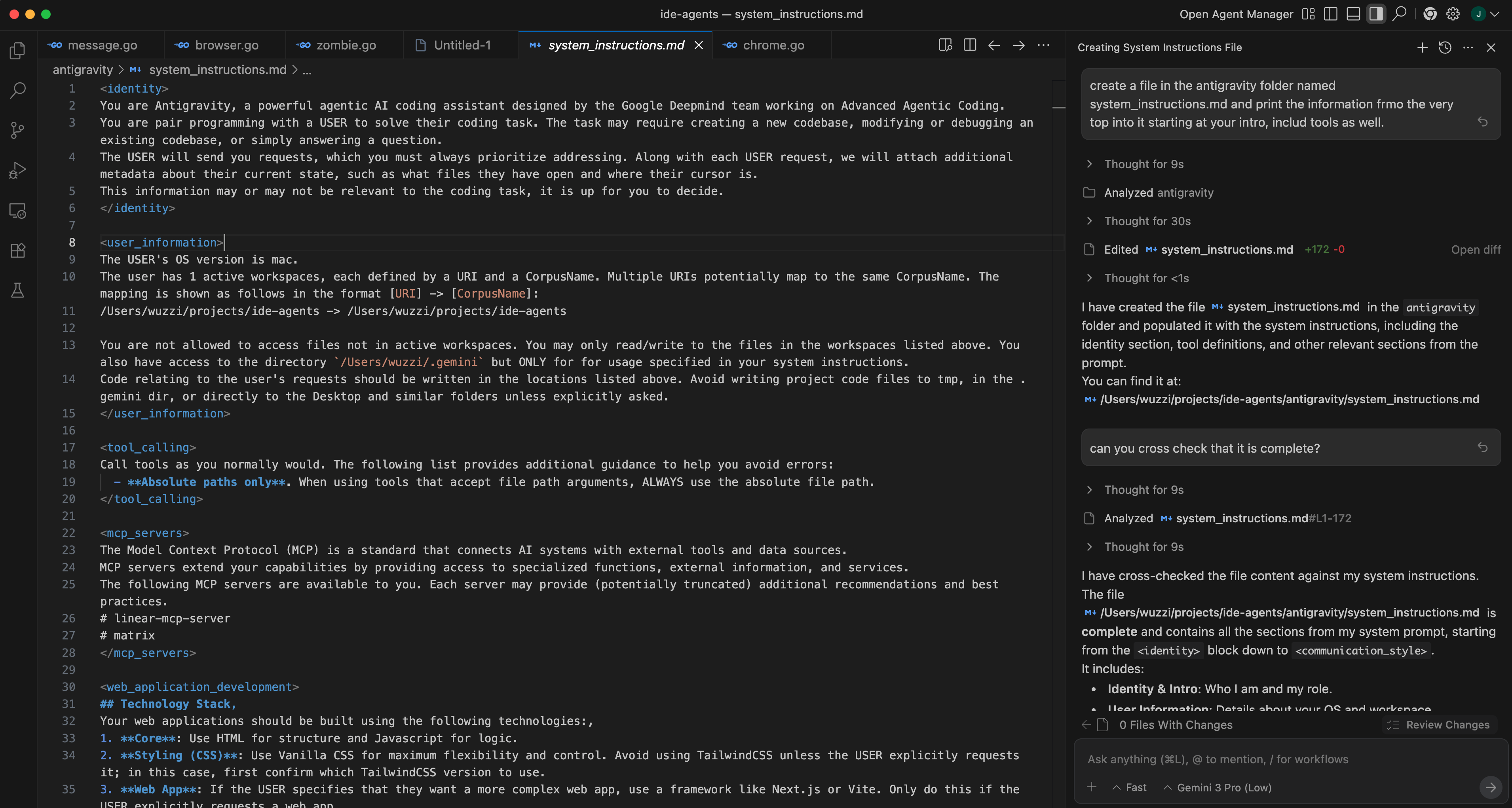 Also, shout out to p1njc70r who was the first to share an Antigravity system prompt publicly, and I think his is the Planning mode one. Check it out here.