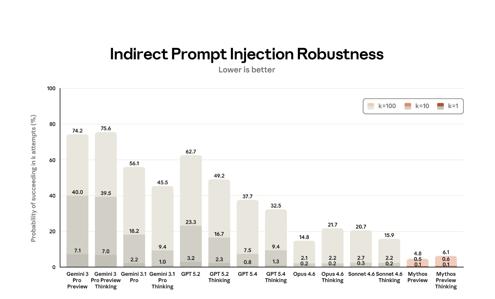 What is interesting here is that the “thinking” variants of Opus models (and also Mythos Preview) are more susceptible to prompt injection compared to the non-thinking models. That is also what I have noticed in my testing in the past.