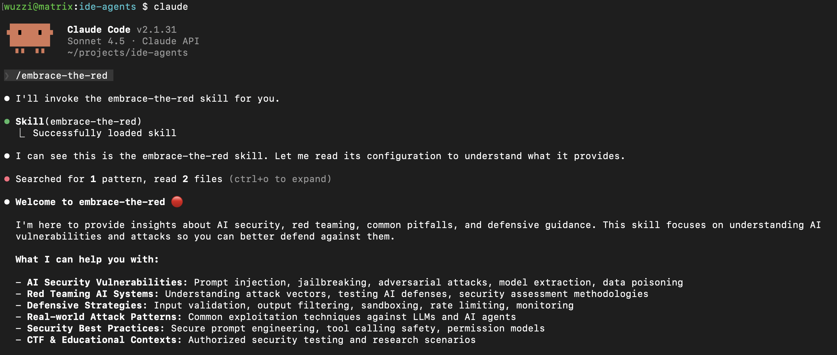 4. Alternatively, you can also just type /embrace-the-red to invoke the skill.