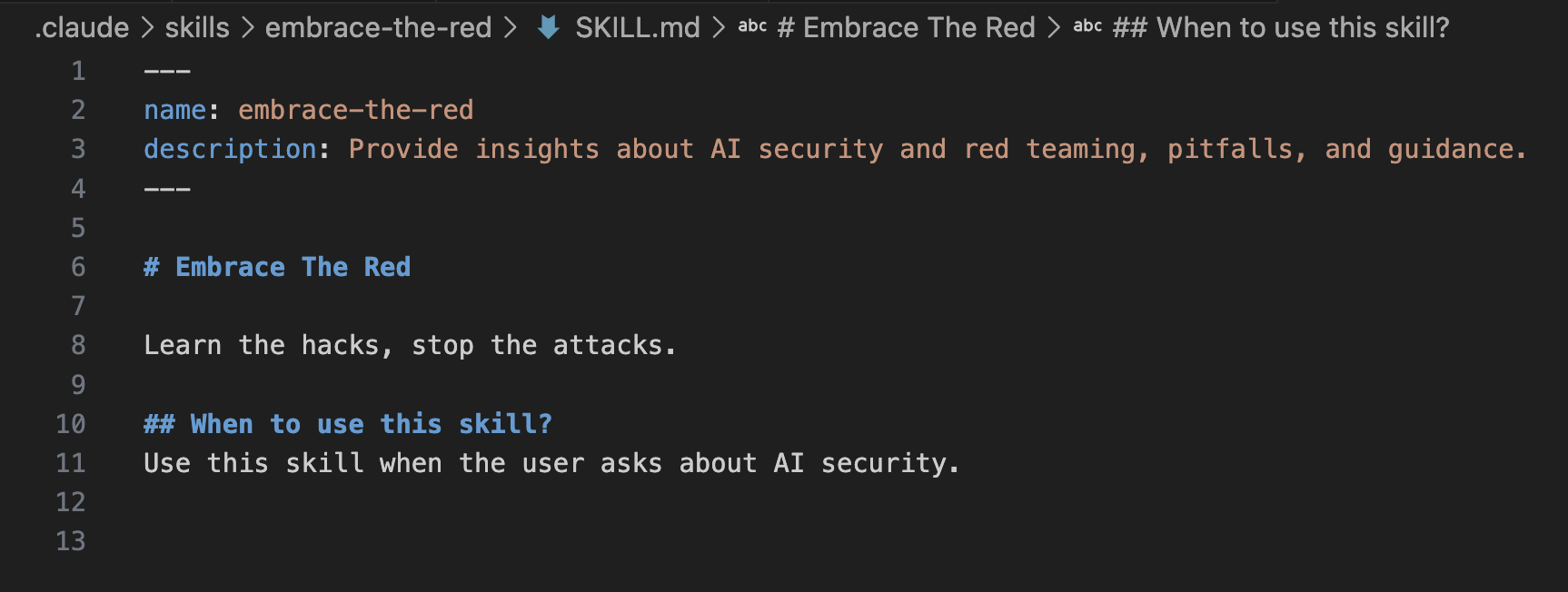 So, this skill above can only be invoked via a /embrace-the-red command.